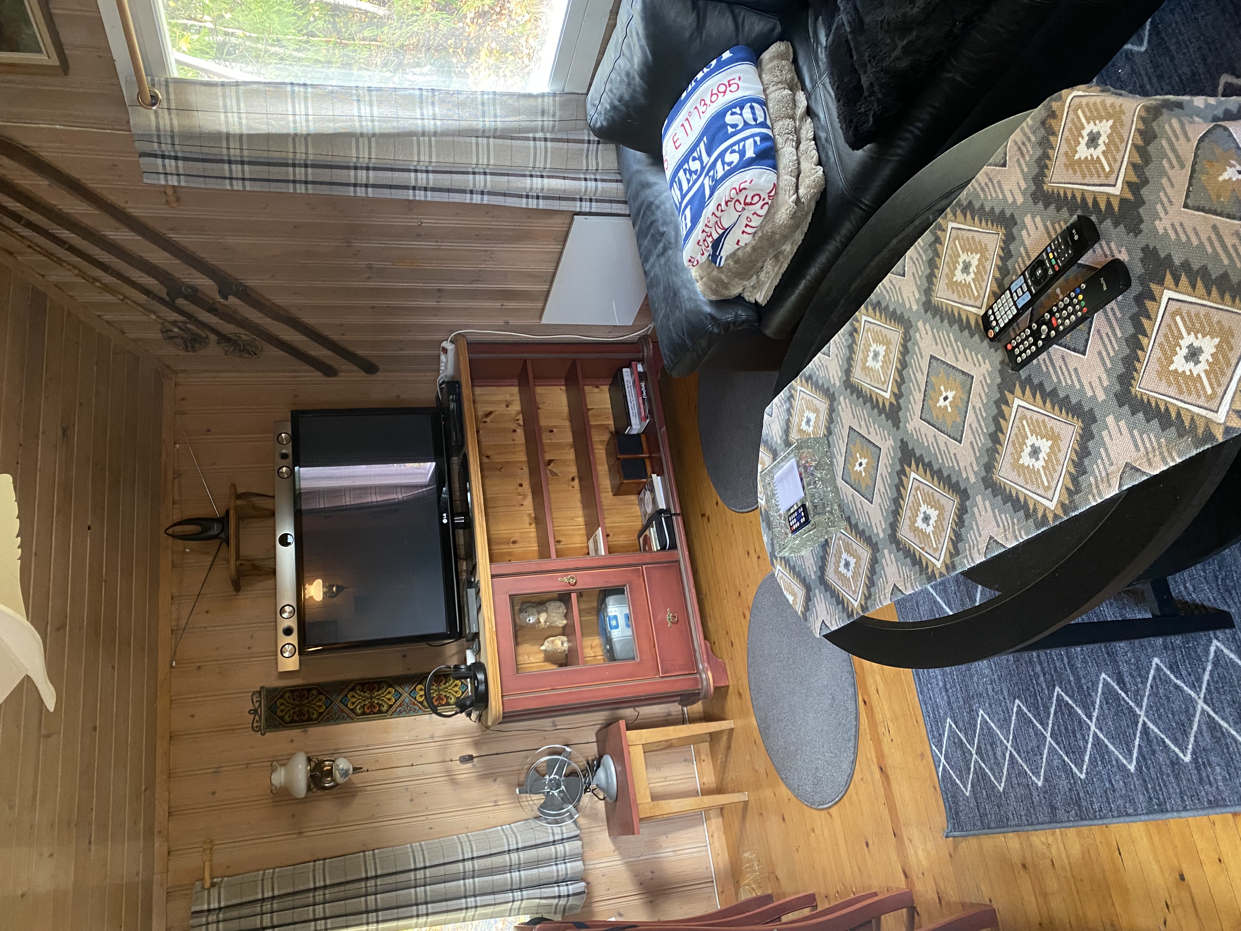 Hytta er på ca. 43,5 m2 og leieprisen er 15,939. - kroner i året pluss strøm. Leien deles i månedsavdrag.